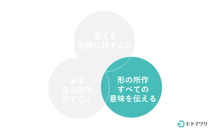 形の所作すべての何故に答えられる意味を持たせること。