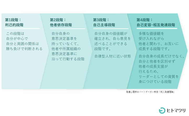 これを考えたときに、発達心理学のロバートギーガン教授の「成人発達理論」という物がすごく参考になったんですね。