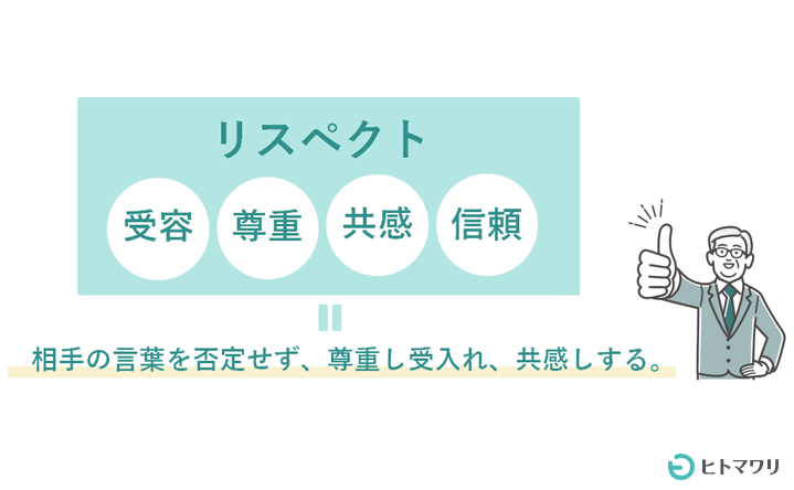 相手の言葉を否定せず、尊重し受入れ、共感しする。