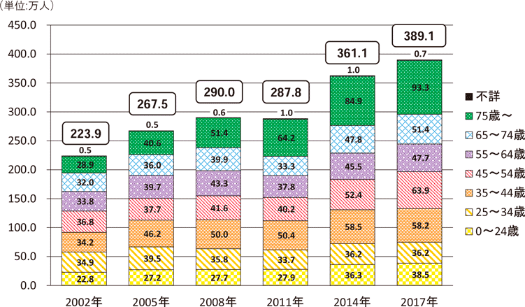 引用:内閣府 年齢階層別障害者数の推移