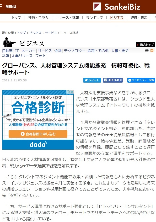 SankeiBizにヒトマワリが掲載されました
